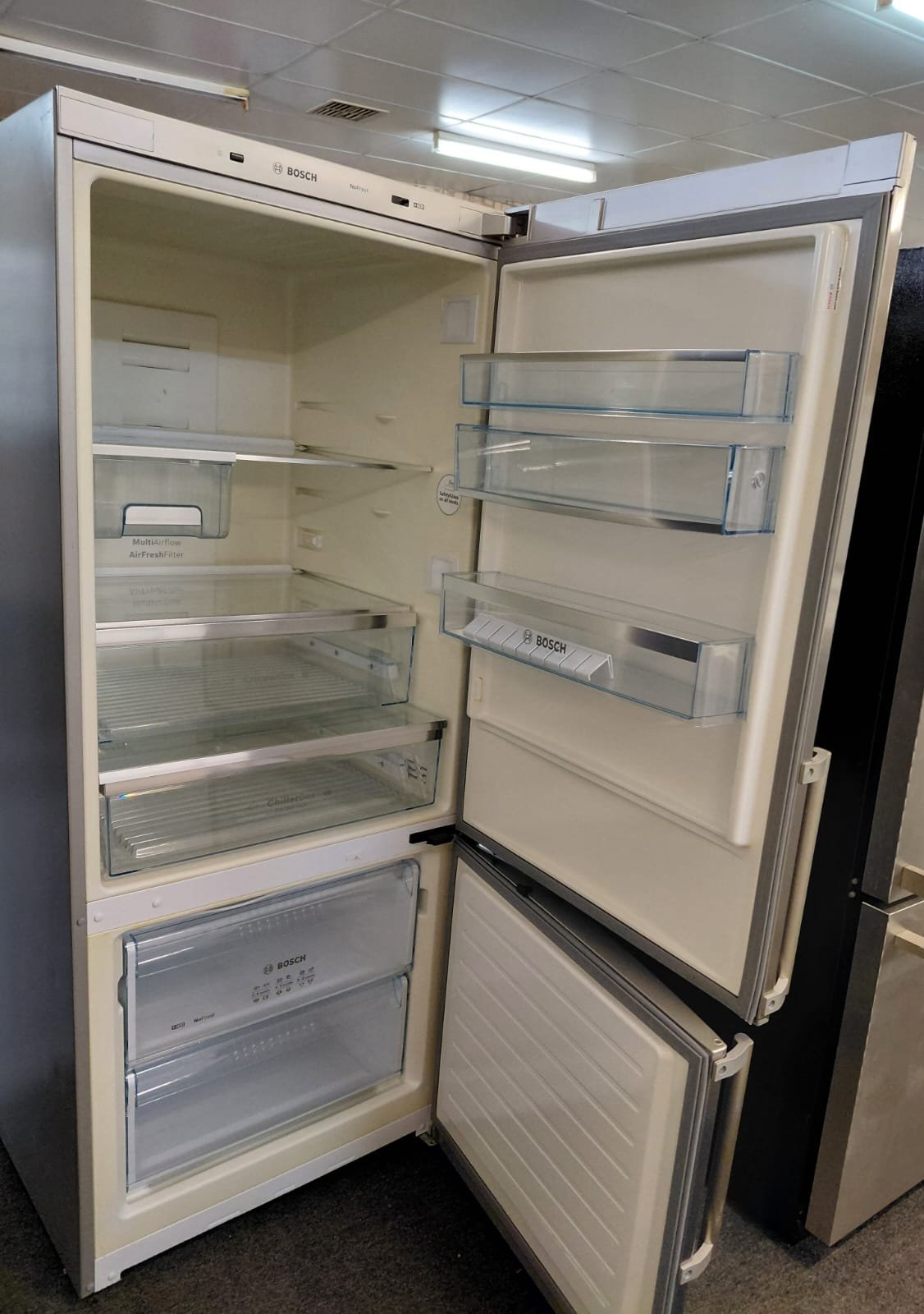 Finished in a stylish stainless steel look exterior, this Bosch KGN53AI30A/03 452L Bottom Mount Fridge complements modern kitchens and presents beautifully. This unit is in excellent overall condition, clean and well maintained inside and out.