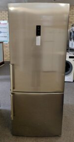 The bottom mount design places the refrigerator compartment at eye level, making everyday items easy to access without bending. Inside the fridge, you’ll find adjustable glass shelves, spacious door bins for bottles and cartons, and a large crisper drawer designed to help keep fruit and vegetables fresh for longer.