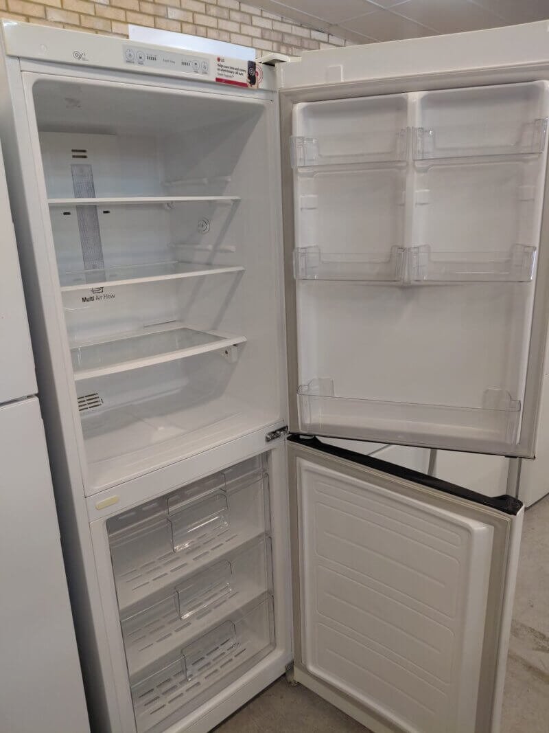 This refurbished LG refrigerator has been thoroughly checked and cleaned, ensuring excellent working condition and dependable performance.